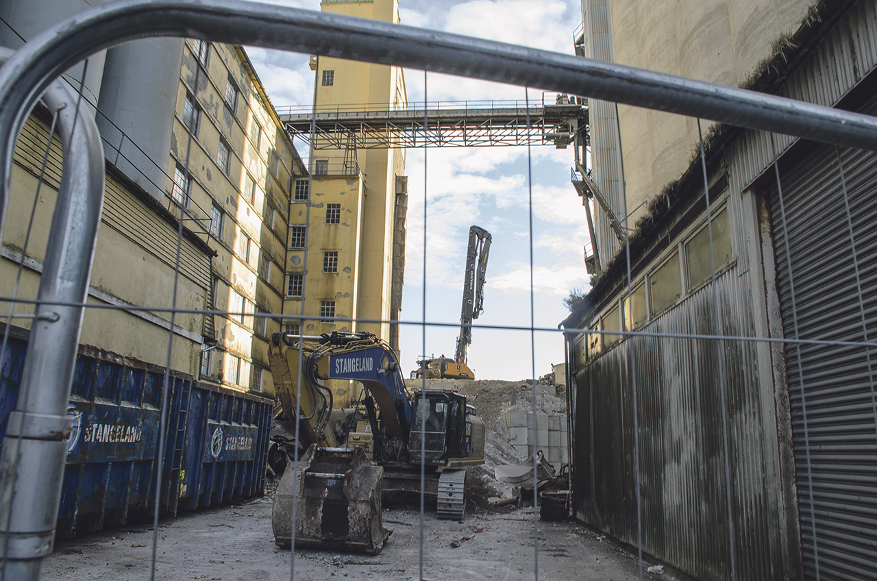 – Nordkronens silorør rives nå, men ikke på grunn av utbyggingsplanene for Mølleneset, forklarer arkitekt Ane S. Dahl fra Helen & Hard AS. – Takplater hadde løsnet så sikkerhetsrisikoen ble for høy. Ifølge pressemelding fra Felleskjøpet 11. oktober var planen at Nordkronen-bygget skulle stå fram til Felleskjøpet Agri hadde besluttet endelig plan for Stavanger havnesilo. Men hensynet til sikkerhet måtte gå foran. Rivningsarbeidet startet i september, og er planlagt ferdig i løpet av desember. Norgesmøllene kjøpte Nordkronen i 1996 og la ned virksomheten to år etter. Siden da har siloene i Nordkronen-anlegget vært ute av drift. Felleskjøpet engasjerte seg i debatten rundt matberedskap og kjøpte Stavanger havnesilo i 2014. De to store betongsiloene, som tidligere var beredskapslager, er fortsatt i full drift som kommersielt lager for Felleskjøpet.Utbyggingsplan (2754) for Mølleneset var nylig ute på høring med uttalefrist 17. november.