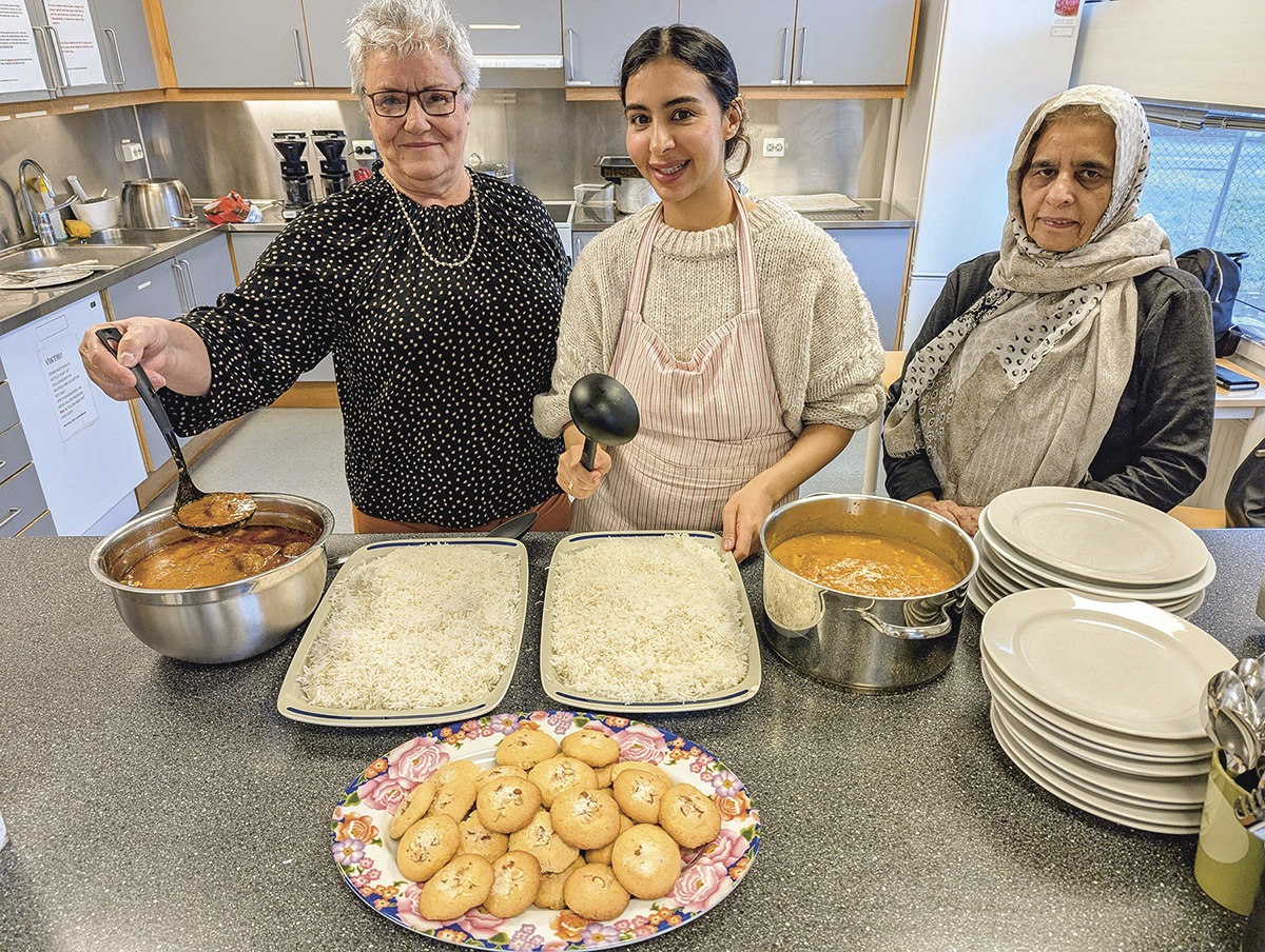 Vi møtes tidlig en mørk morgen i november på Midjord bydelshus. Samreen og mamma Ume fordeler raskt og systematisk mengder av grønnsaker, urter og krydder på de to kjøkkenbenkene. De har tre timer på seg til å lage mat til 30-40 personer. Det lukter liflig fra krydder og urter. – Jeg starter ofte dagen før, forteller Samreen. – I går lagde jeg kylling boller. Da kjørte jeg først fileter og kyllinglår gjennom kjøkkenmaskinen til kjøttdeig. I dag skal vi lage vi to pakistanske retter hvor ca halvparten av maten blir vegansk. Ume skreller og skjærer opp poteter i høyt tempo. Samreen forbereder to store gryteretter. Mengder med ris vaskes og klargjøres til koking. Fortell, hva er dine tips for å lage rimelig god mat? – Internasjonalt Matsenter (IMS) er vår viktigste butikk, forteller Samreen. – Der handler vi ris, olje, mel, krydder, frukt og grønnsaker. Ris kjøper vi gjerne i store poser på 5-10 kilo. Vi bruker basmati ris til alt. Kan jeg komme med en oppfordring? Alle bare må prøve de nystekte nan-brødene hos IMS! Så bruker vi mange rimelige First Price-varer fra KIWI og Xtra-varer fra Coop, begge er helt greie i mat.