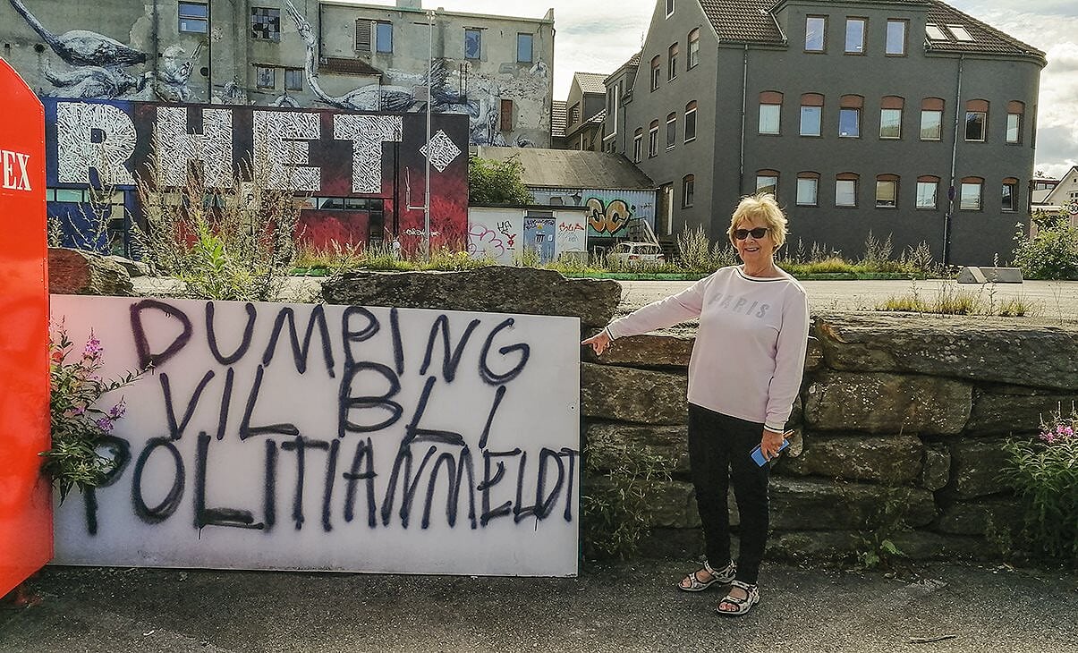 – Vi som bor her i Øst synes dette er et fantastisk sted å bo, særlig nå på sommeren med Sjøparken med tilhørende herligheter. Medaljens bakside er forsøpling uten like, som helt klart forringer bokvaliteten for oss som bor her. Er det fint vær så flyter søpla, særlig i helgene, med knuste flasker, ølbokser, pizzaesker, matrester og emballasje om morgenen. Vi har brukt mye tid lørdags og søndags morgener på å rydde, og begynner å bli ganske lei. Det er alt for lite dunker utplassert, sier Margareth Paulsen fra Lervig.Pop-ups, tagging og mye boss