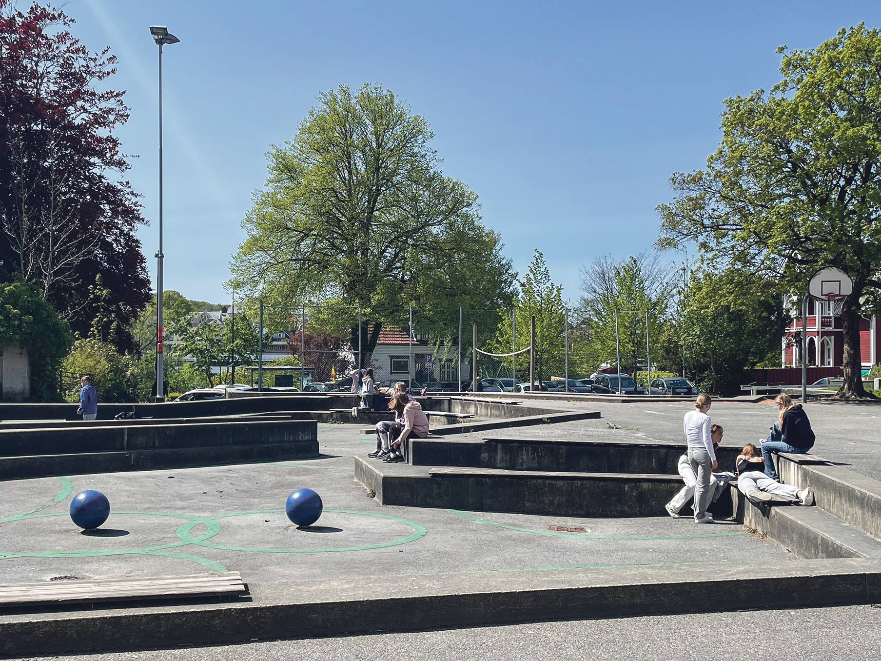 Benker hvor vi kunne snakke og slappe av. Ungdom er ikke så interessert i lekeapparater. Kanskje også noe ballspill. Vi har jo allerede en volleyballbane, men kanskje en ordentlig fotballbane eller basketballbane!
