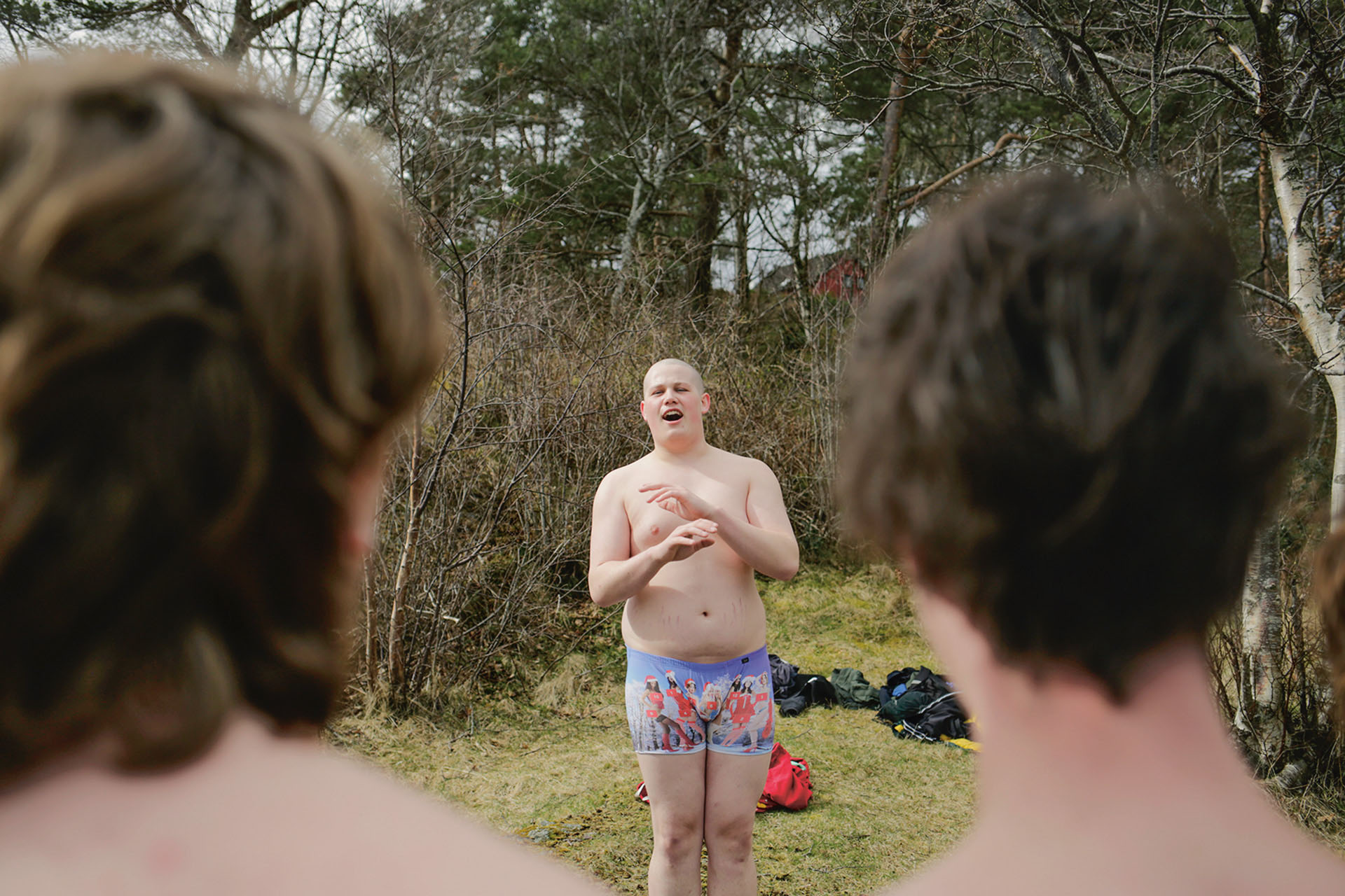 Jordan (19), Ole (17), Noam (16) og Nikolai (18) er alle medlemmer av pubertetskoret på Stavanger Katedralskole. Koret er en gjeng med gutter, og nå nylig også jenter, som går rundt og synger i undertøyet på skolens områder. Koret består nå av 32 medlemmer og har eksistert på Kongsgård i nærmere 80 år, forteller Jordan Joakim Furuly, dirigent i koret og 3. vgs-elev. Jordan har offisielt tittelen som «diktator». Han har ansvar for at koret samles for å øve til oppdrag, samt velge hvilke sanger som skal fremføres.Historien bak pubertetskoret